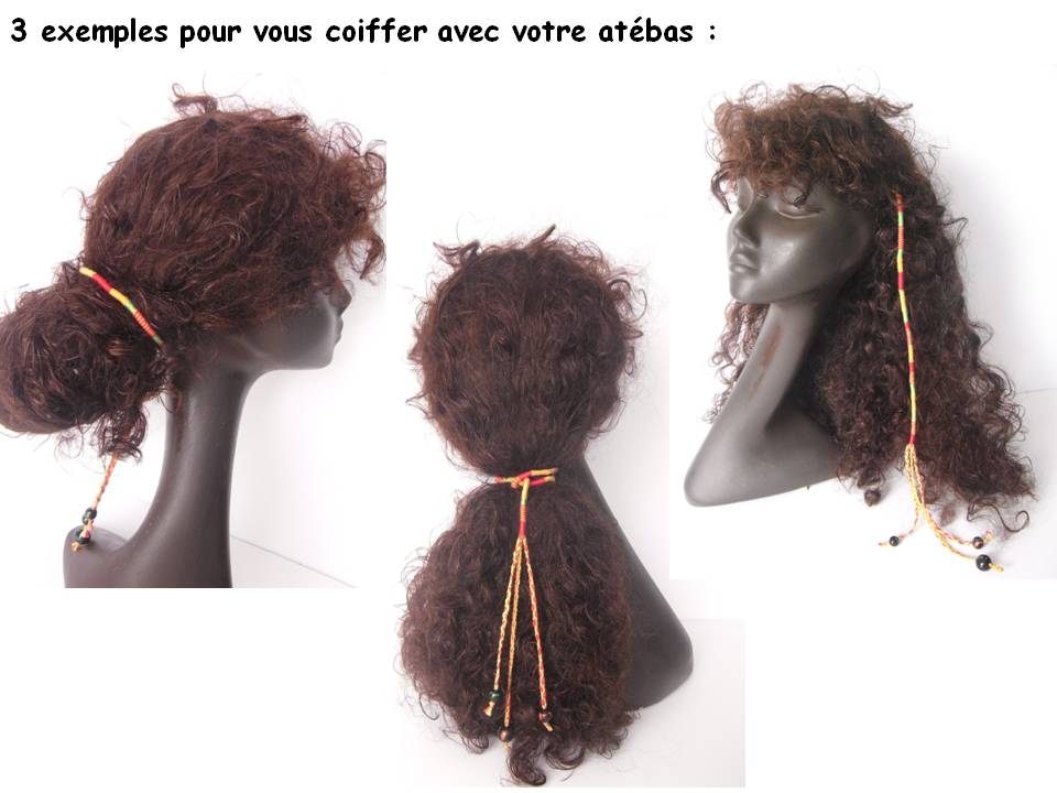 Vous trouverez ici toutes les atébas Le rire de l’arc-en-ciel disponibles à la vente. Elles sont toutes amovibles, ce qui permet d’assortir coiffure et tenue rapidement. On peut également les enlever facilement pour prendre soin de ses cheveux. Certaines atébas ont un élastique à la base et s’enroulent autour d’une mèche de cheveux.