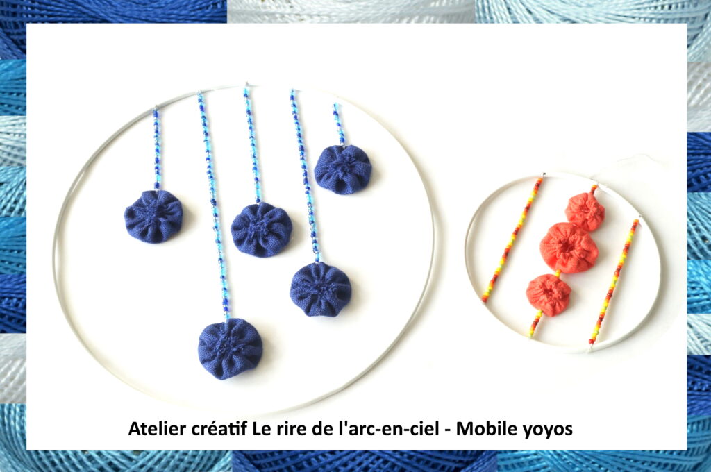- Le mobile yoyos : à vous de choisir sa taille, sa couleur, sa composition… Un mobile tout en légèreté à réaliser avec un anneau, du tissu et des perles.