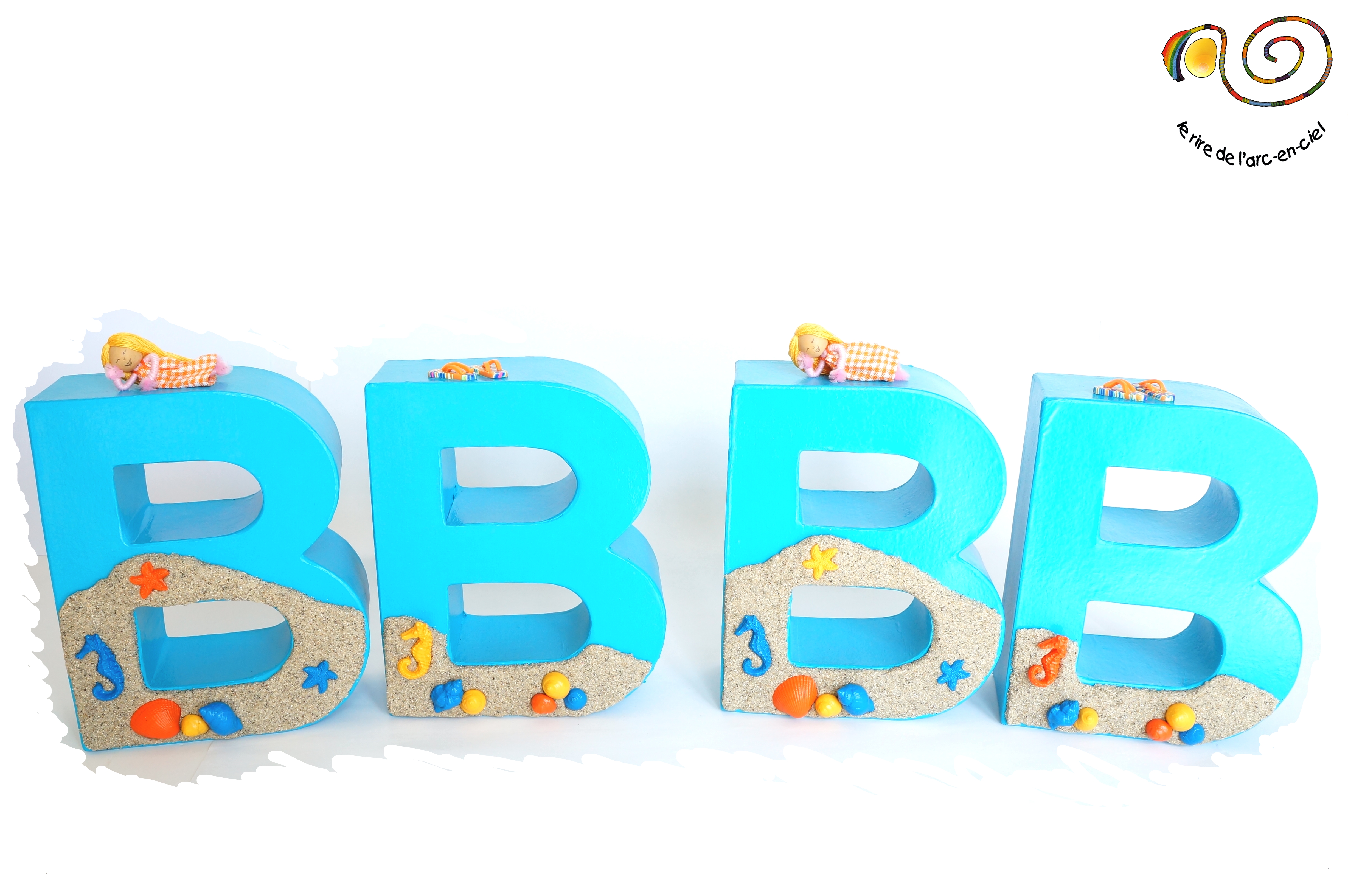 BB, comme Brigitte Bardot, voilà ce que m’avait demandé ma cliente. Ou plus exactement 2 lots d’initiales, soit 4 B en tout. Il s’agit de grandes lettres, presque 2 fois plus grandes que celles que j’utilise habituellement. J’ai réalisé une décoration dans un style « coquillages et crustacés », l’esprit Brigitte Bardot dans les années 60.