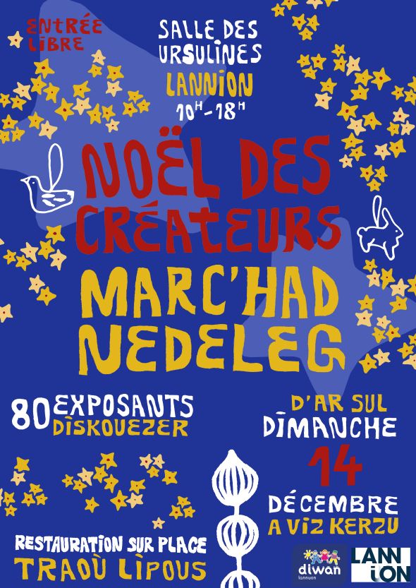 Cette année, nous pourrons nous retrouver dimanche 14 décembre de 10h à 18h au marché de Noël de Lannion, à la salle des Ursulines. Il y aura 80 exposants… Autant dire que vous pourrez dénicher plein de cadeaux pour vos proches sur ce marché !